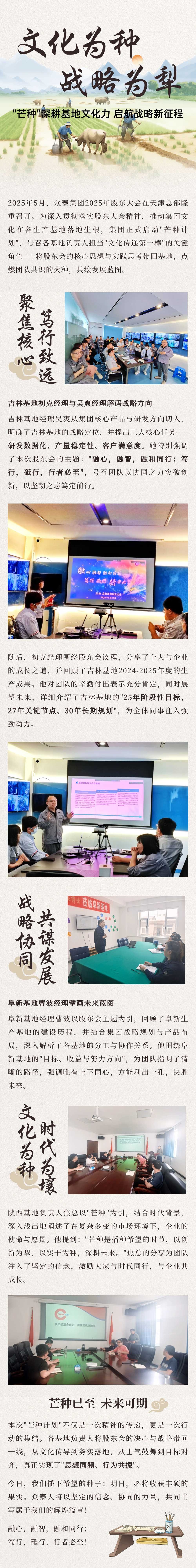 5月,為深入貫徹落實股東大會精神,推動集團文化在各生產(chǎn)基地落地生根,集團正式啟動"芒種計劃",號召各基地負責(zé)人擔(dān)當