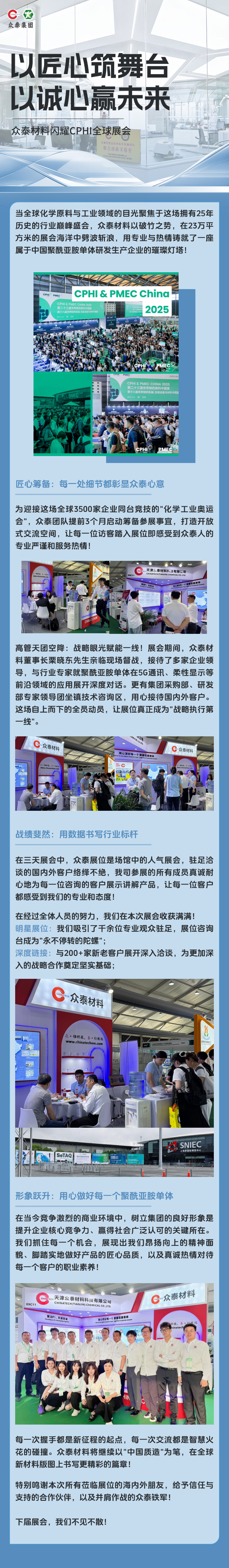 以匠心筑舞臺(tái) 以誠心贏未來 眾泰材料閃耀CPHI全球展會(huì)